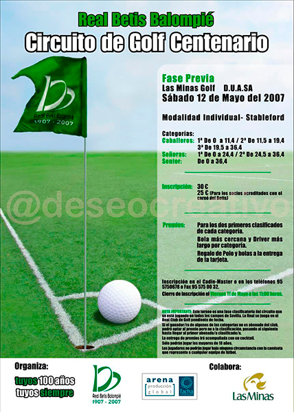 En este ejemplo en concreto, que realicé cuando hacía mis prácticas en una empresa de publicidad, había que hacer la cartelería de unos eventos deportivos relacionados con el centenario del club de fútbol del Real Betis Balompié y todo el trabajo fue realizado con Photoshop.